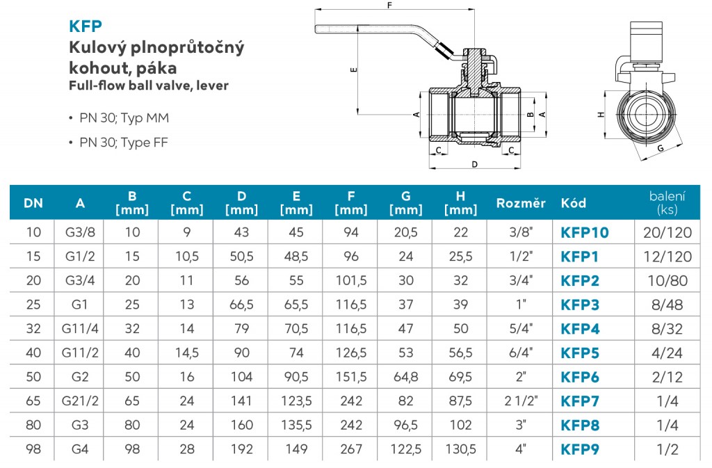 -Materiál tělesa a koule: mosaz CW617N-4MS