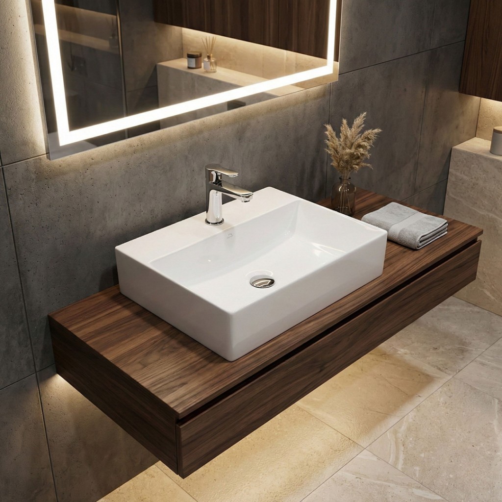 Umyvadla Kvadrato byla vytvořena s ohledem na moderní design a nabízejí dvě elegantní povrchové úpravy: černou a bílou, které vytvářejí jedinečnou kompozici. Díky promyšleným rozměrům a vysoce kvalitní keramice jsou umyvadla pohodlná pro každodenní použití. Elegantní obdélníkový tvar s výraznými rohy a vysokými stěnami účinně zabraňuje rozlití vody na pracovní desku nebo podlahu. Novinkou v řadě jsou umyvadla Kvadrato s otvory pro baterii, která poskytují větší flexibilitu při výběru armatur a umožňují snadné přizpůsobení individuálním potřebám. Kvadrato dokonale doplňuje ostatní produkty Laveo. Kombinací umyvadel s odtokovými bateriemi, bateriemi a sifony k dřezu můžete vytvořit výrazné a ucelené aranžmá, která vylepší každou koupelnu.