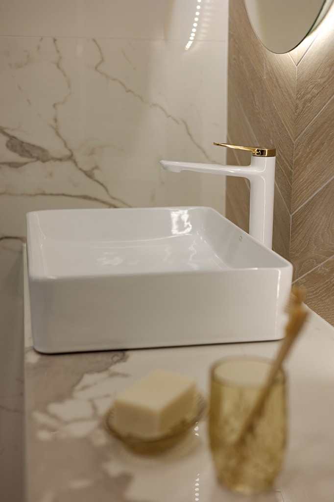 Umyvadla Kvadrato byla vytvořena s ohledem na moderní design. K dispozici ve dvou povrchových úpravách: černé a bílé, Kvadrato vytváří jedinečnou kompozici. Díky svým rozměrům jsou tato umyvadla vyrobena z vysoce kvalitní keramiky a jsou vhodná pro každodenní použití. Jejich elegantní obdélníkový tvar s výraznými rohy představuje model umyvadla na desku s hmotností něco málo přes 8 kg. Vysoké stěny zabraňují rozlití vody na desku nebo podlahu. Kvadrato se bude perfektně hodit k dalším produktům Laveo. Unikátní barevné kombinace vytvořené kombinací click-clack zátek, baterií a sifonů dřezu mohou vypadat neuvěřitelně působivě.