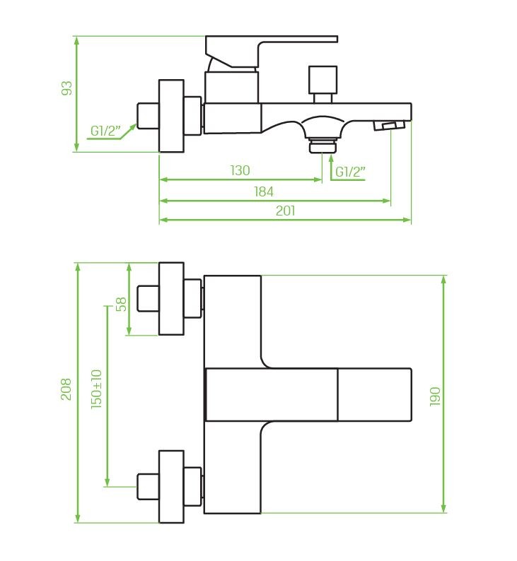 Módní černá povrchová úprava podtrhuje moderní vzhled baterie a dodává prostoru elegantní, odvážný akcent. Série Kvadrato je nejen vizuálně atraktivní, ale i plně funkční a pohodlná při každodenním použití.