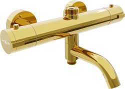 Termostatická vanová baterie vyrobená z mosazi, opatřená povrchovou úpravou v různých barevných variantách.