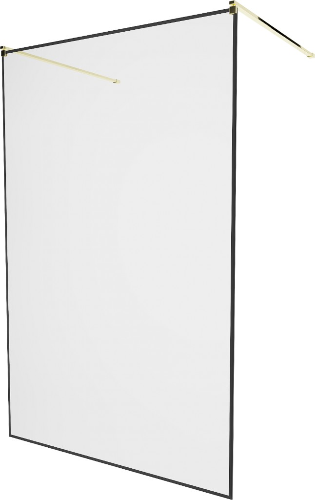 Walk-in sprchová zástěna KIOTO 110 x 200 cm, 8 mm - čiré sklo s černým vzorem, zlaté vzpěry