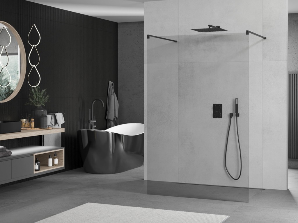 Walk-in sprchová zástěna KIOTO 130 x 200 cm, 8 mm - čiré sklo, černé vzpěry