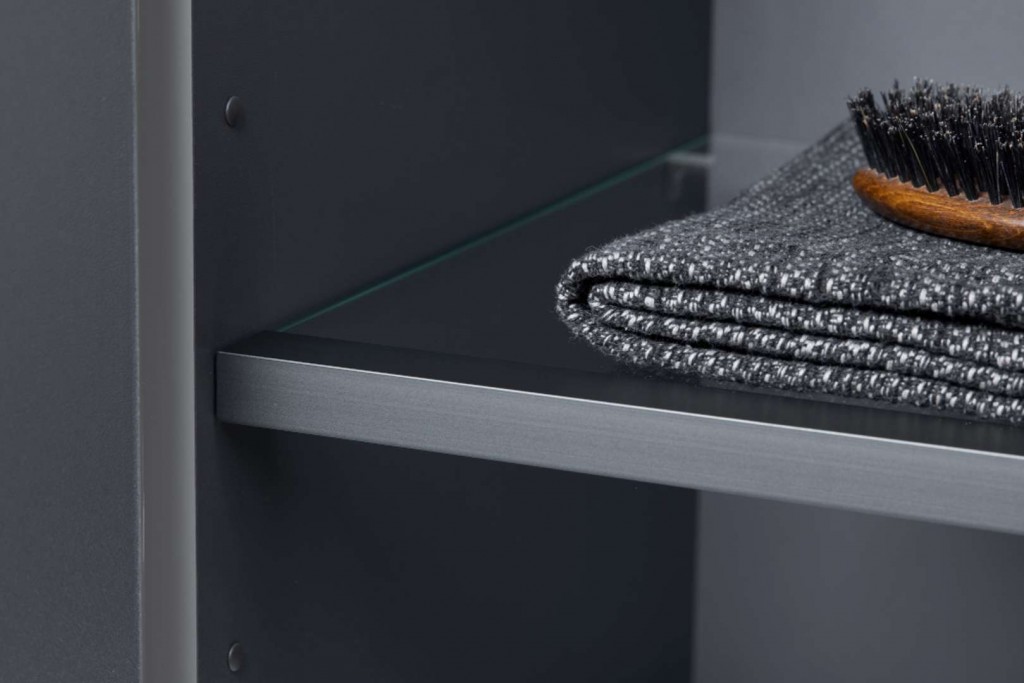 - materiál vnitřní části: vysoce kompaktní třívrstvá DTD, oboustranně tvrzená melaminovou pryskyřicí, barva diamantově černá