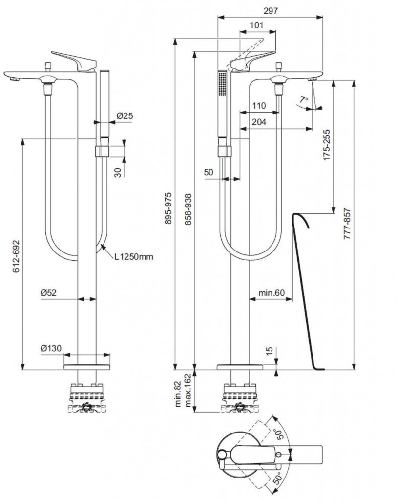 - pro instalaci do podlahy, tloušťka 82-162 mm