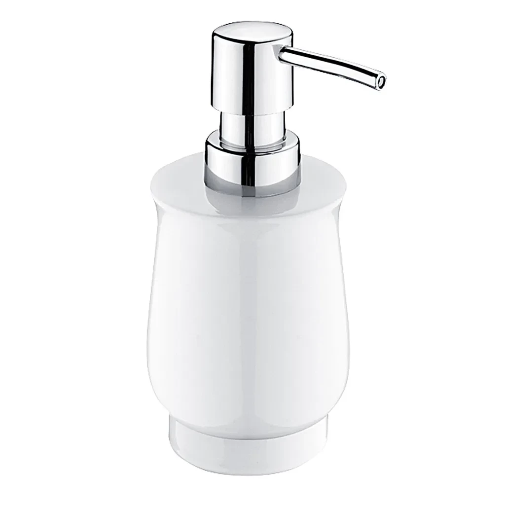 Keramický dávkovač na tekuté mýdlo. Objem 300 ml. Pumpička plast. Povrchová úprava chrom.