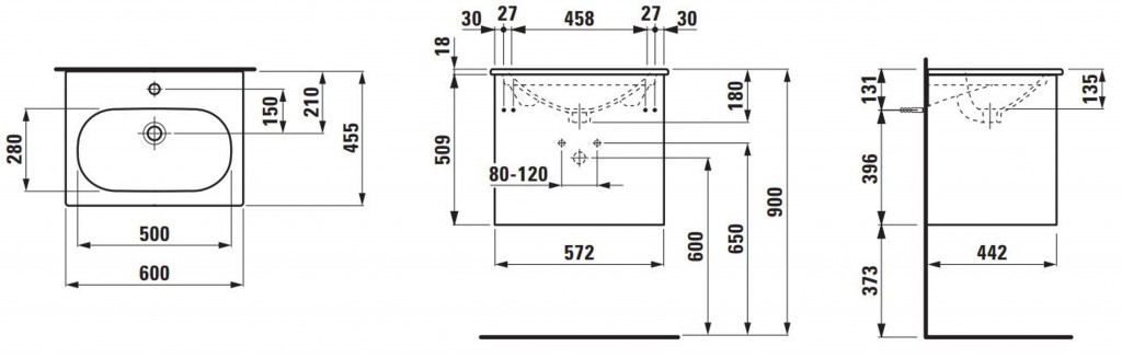- rozměr umyvadla: 180 x 600 x 455 mm