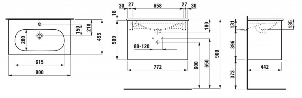 - rozměr umyvadla: 180 x 800 x 455 mm