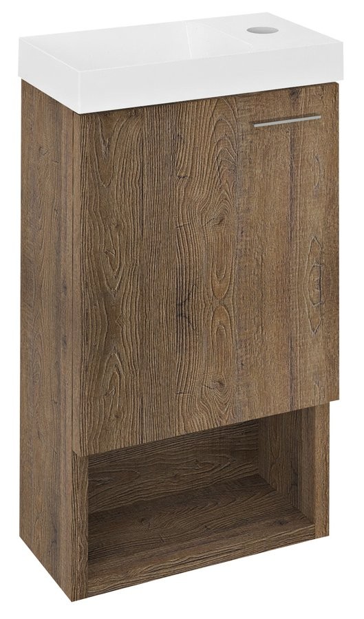 Malé rozměry koupelnového nábytku LATUS umožňují instalaci především do stísněných prostor, obzvláště na toalety. Skříňka se přímo nabízí k uskladnění čistících a hygienických prostředků nebo toaletního papíru. Umyvadlo z litého mramoru nebo keramiky vytváří se skříňkou kompaktní celek. V nabídce je jak několik tvarů umyvadel, tak barevných dekorů skříněk pro větší kompatibilitu.