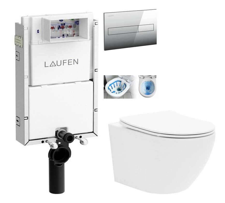 LAUFEN Podomít. systém LIS TW1 SET s chromovým tlačítkem + WC CALANI Loyd + SEDÁTKO (H8946630000001CR LO1)