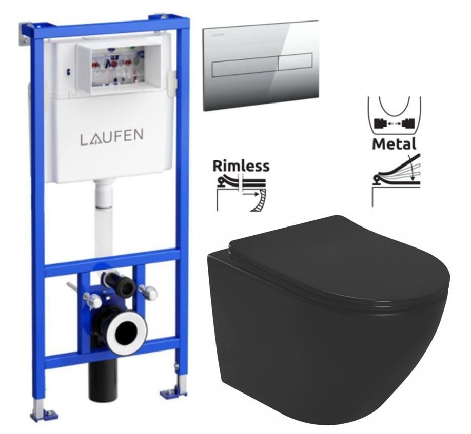 Závěsná WC mísa RIMLESS Carlo Mini Slim černá matná (REA-C8489)
