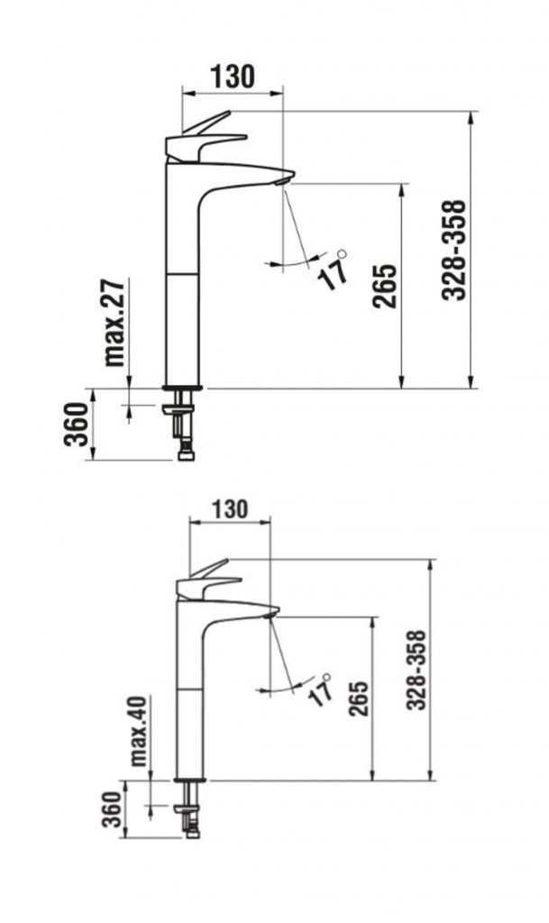 Vysoká umyvadlová baterie
