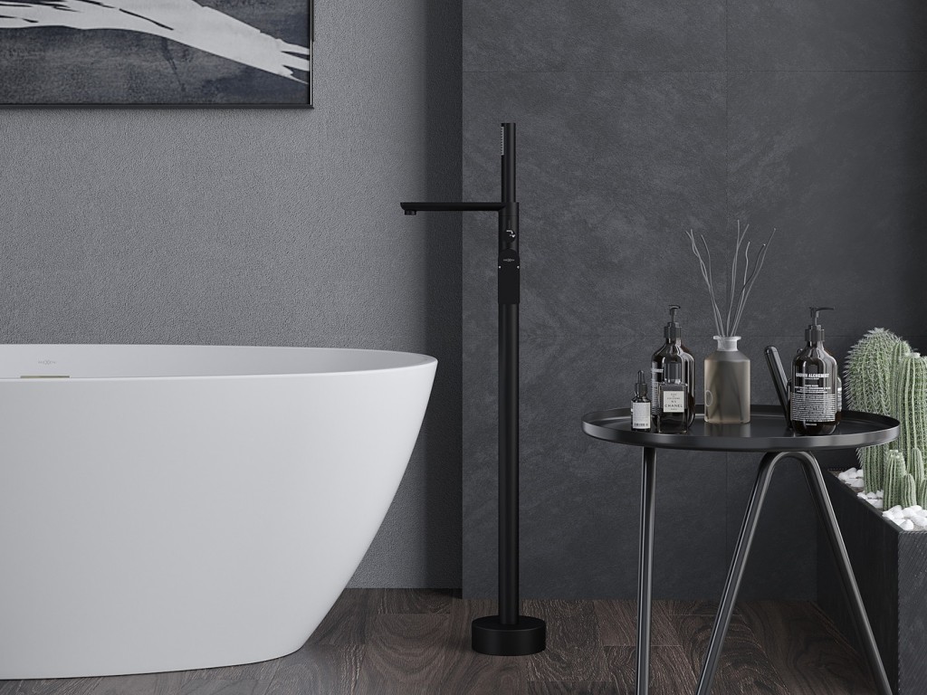 Leda volněstojící vanová baterie černá (75633-70) 2. jakost Vanová baterie s připojením pro instalaci do prostoruZákladním materiálem baterie je mosaz té nejvyšší kvality, doplněný o keramickou kartuši, se kterou otevřete a zavřete vodu až 500 000 krát. Spolehlivě vám bude sloužit po mnoho let i díky povrchové úpravě chránící vanovou baterii před poškozením a korozí.