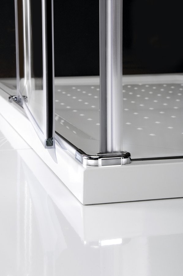 Síla bezpečnostních skel je 8 mm v pevných částech a 6 mm v otočných částech. Výška zástěn je 1 900 mm.