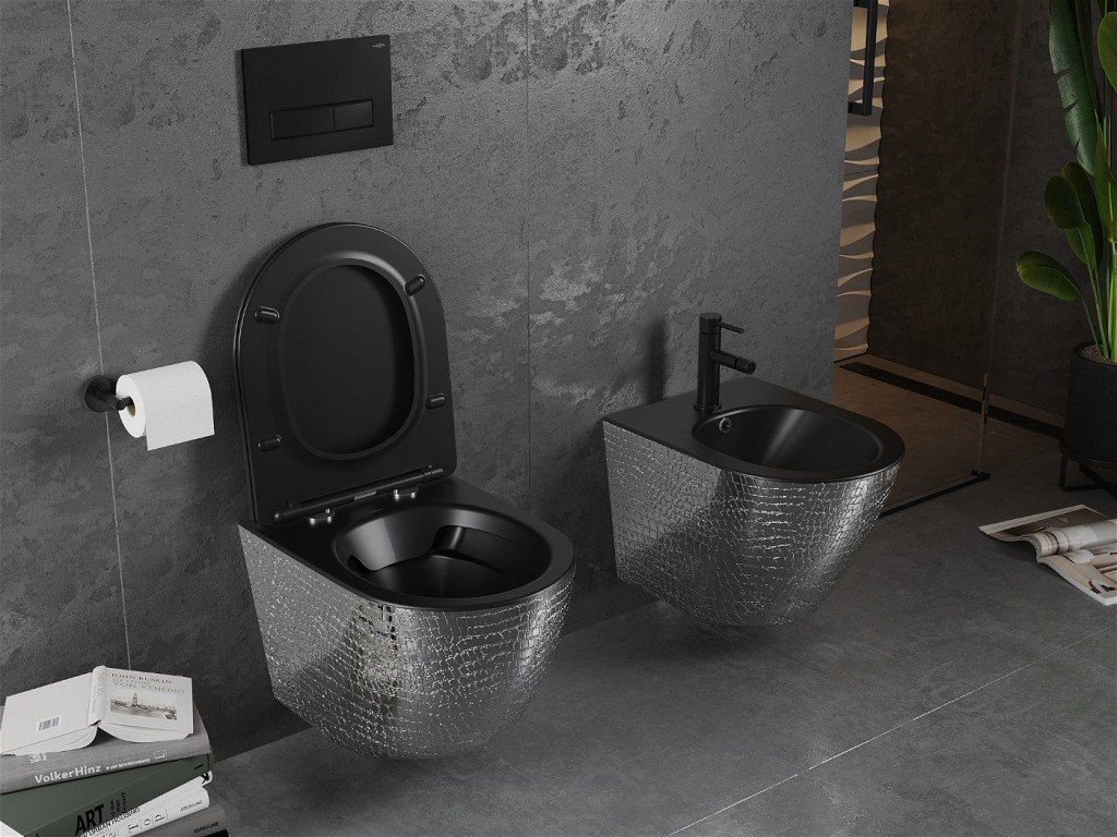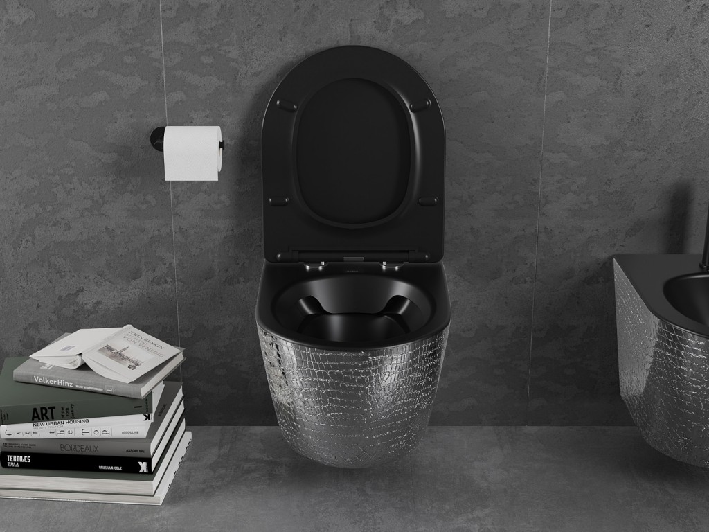 Součástí závěsné WC mísy je duroplastové sedátko SLIM s pomalým zavíráním a snadným uvolněním.