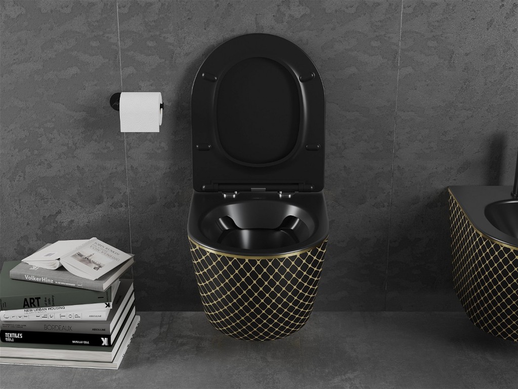 Součástí závěsné WC mísy je duroplastové sedátko SLIM s pomalým zavíráním a snadným uvolněním.