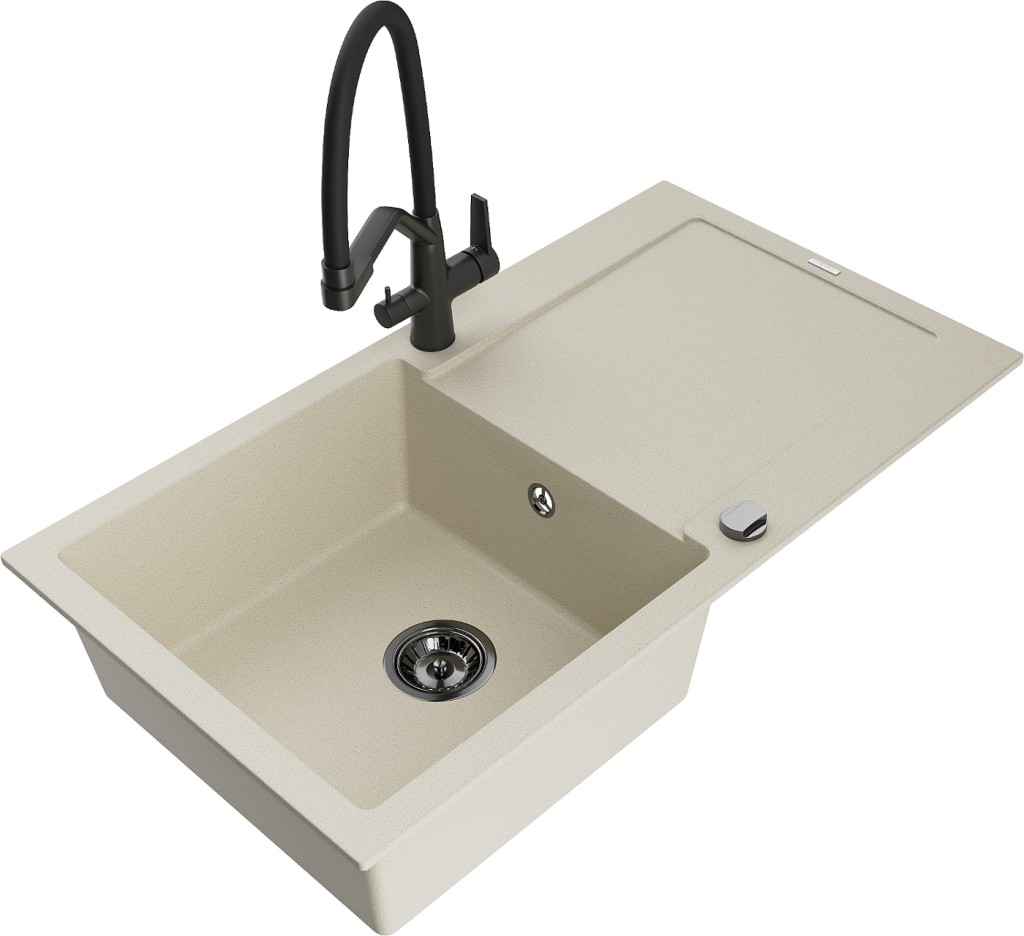 Speciální složení materiálu použitého pro výrobu je žula (80% žula – kámen, 20% pryskyřice) a jeho vysoká hustota garantuje bezpečné používání výrobku, a proto jsou granitové dřezy tak oblíbené. Díky povrchové úpravě nejsou na granitovém dřezu vidět zaschlé kapky, je odolný vůči skvrnám a neztrácí barvu. Povrch je odolný vůči nárazu, poškrábání, změně barvy, vysoké teplotě a teplotním šokům. Při jejich údržbě se používají obvyklé čistící, prostředky nebo prostředky na nádobí s jemným abrasivem. Výhodou je rozmanitá barevná nabídka.