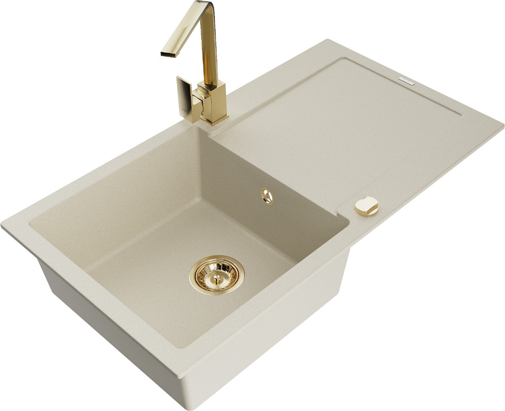 Speciální složení materiálu použitého pro výrobu je žula (80% žula – kámen, 20% pryskyřice) a jeho vysoká hustota garantuje bezpečné používání výrobku, a proto jsou granitové dřezy tak oblíbené. Díky povrchové úpravě nejsou na granitovém dřezu vidět zaschlé kapky, je odolný vůči skvrnám a neztrácí barvu. Povrch je odolný vůči nárazu, poškrábání, změně barvy, vysoké teplotě a teplotním šokům. Při jejich údržbě se používají obvyklé čistící, prostředky nebo prostředky na nádobí s jemným abrasivem. Výhodou je rozmanitá barevná nabídka.