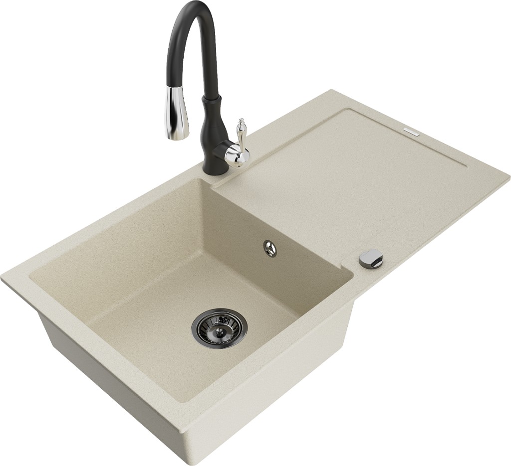 Speciální složení materiálu použitého pro výrobu je žula (80% žula – kámen, 20% pryskyřice) a jeho vysoká hustota garantuje bezpečné používání výrobku, a proto jsou granitové dřezy tak oblíbené. Díky povrchové úpravě nejsou na granitovém dřezu vidět zaschlé kapky, je odolný vůči skvrnám a neztrácí barvu. Povrch je odolný vůči nárazu, poškrábání, změně barvy, vysoké teplotě a teplotním šokům. Při jejich údržbě se používají obvyklé čistící, prostředky nebo prostředky na nádobí s jemným abrasivem. Výhodou je rozmanitá barevná nabídka.