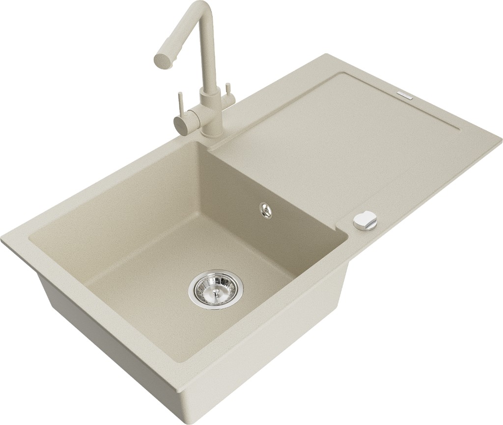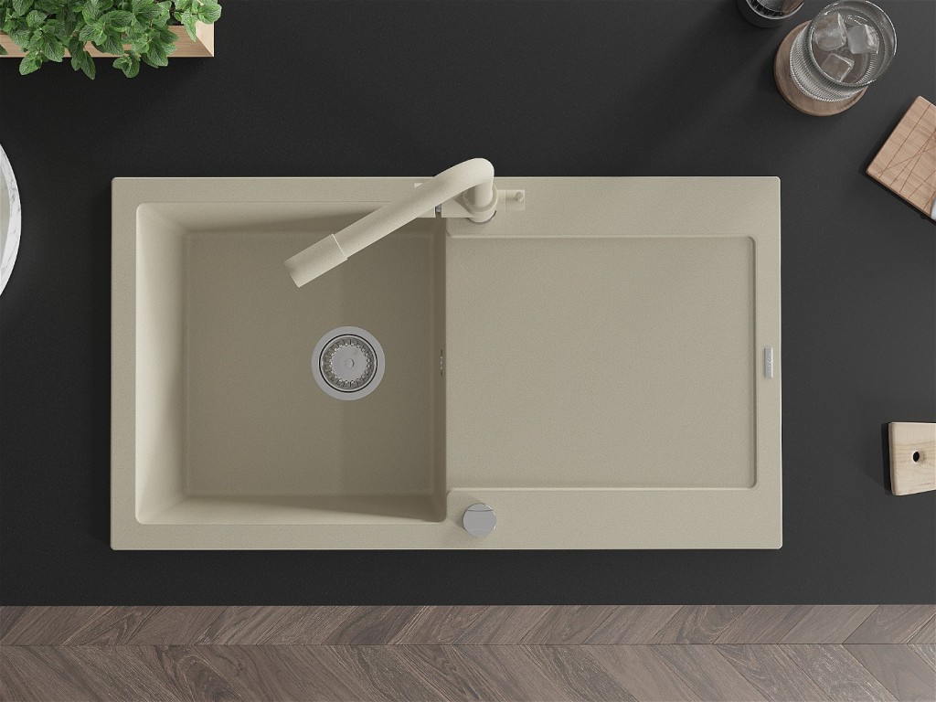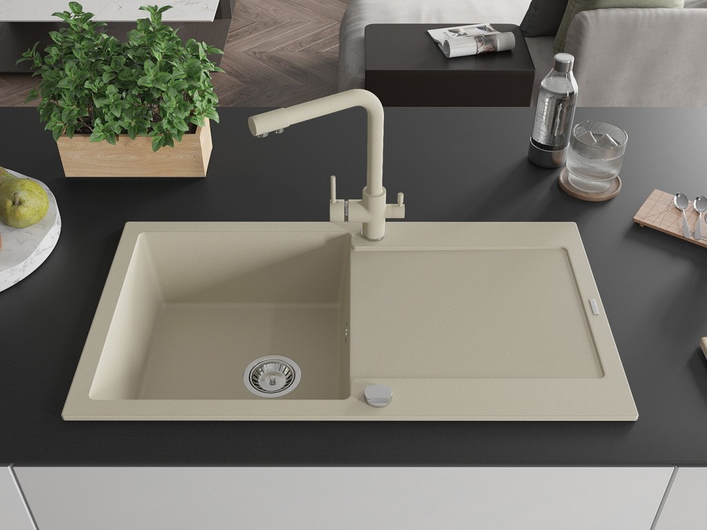 Speciální složení materiálu použitého pro výrobu je žula (80% žula – kámen, 20% pryskyřice) a jeho vysoká hustota garantuje bezpečné používání výrobku, a proto jsou granitové dřezy tak oblíbené. Díky povrchové úpravě nejsou na granitovém dřezu vidět zaschlé kapky, je odolný vůči skvrnám a neztrácí barvu. Povrch je odolný vůči nárazu, poškrábání, změně barvy, vysoké teplotě a teplotním šokům. Při jejich údržbě se používají obvyklé čistící, prostředky nebo prostředky na nádobí s jemným abrasivem. Výhodou je rozmanitá barevná nabídka.