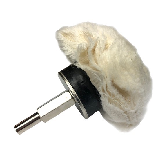 Leštící kotouč z bavlny houbovitého tvaru nasazený na trnu.