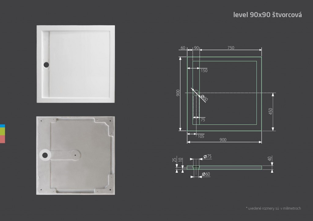 - plastový sifon LEVEL o průměru 60 mm součástí vaničky