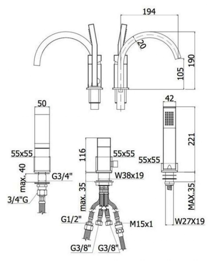 - balení obsahuje baterii, vanový výtok a tyčovou ruční sprchu