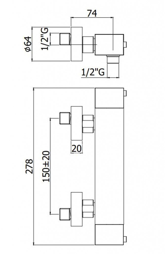 Termostatická nástěnná sprchová baterie, bez sprchového příslušenství