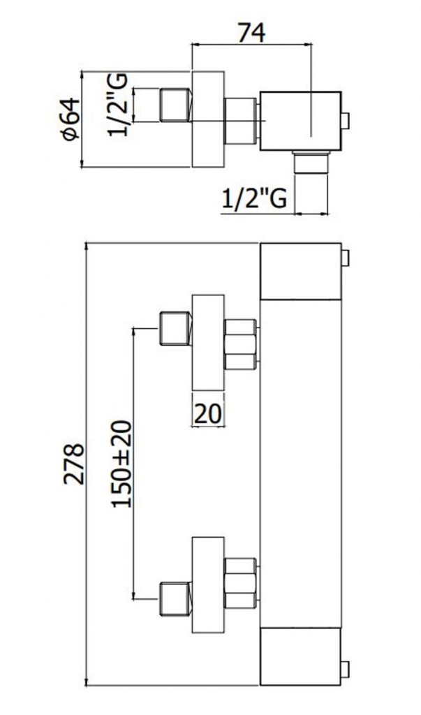 Termostatická nástěnná sprchová baterie, bez sprchového příslušenství