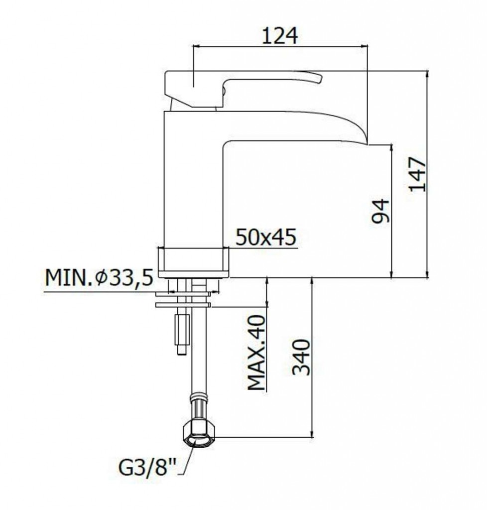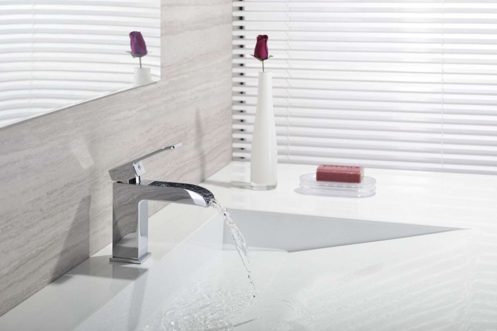 Umyvadlová stojánková baterie s otevřeným výtokem, bez výpustí