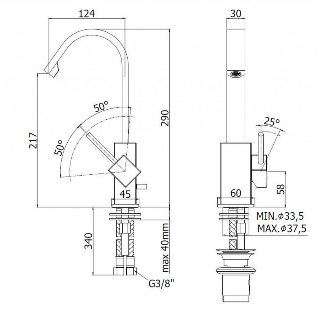 Umyvadlová stojánková baterie, vysoká bez výpusti