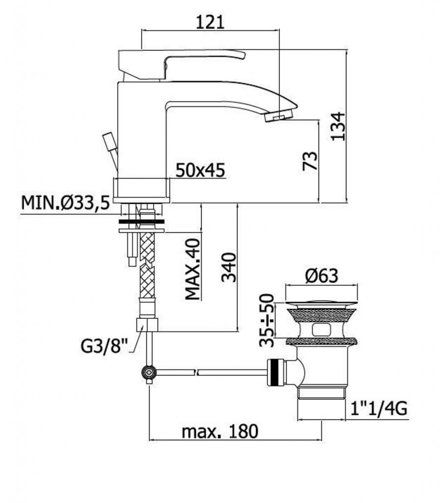 Umyvadlová stojánková páková baterie s výpustí