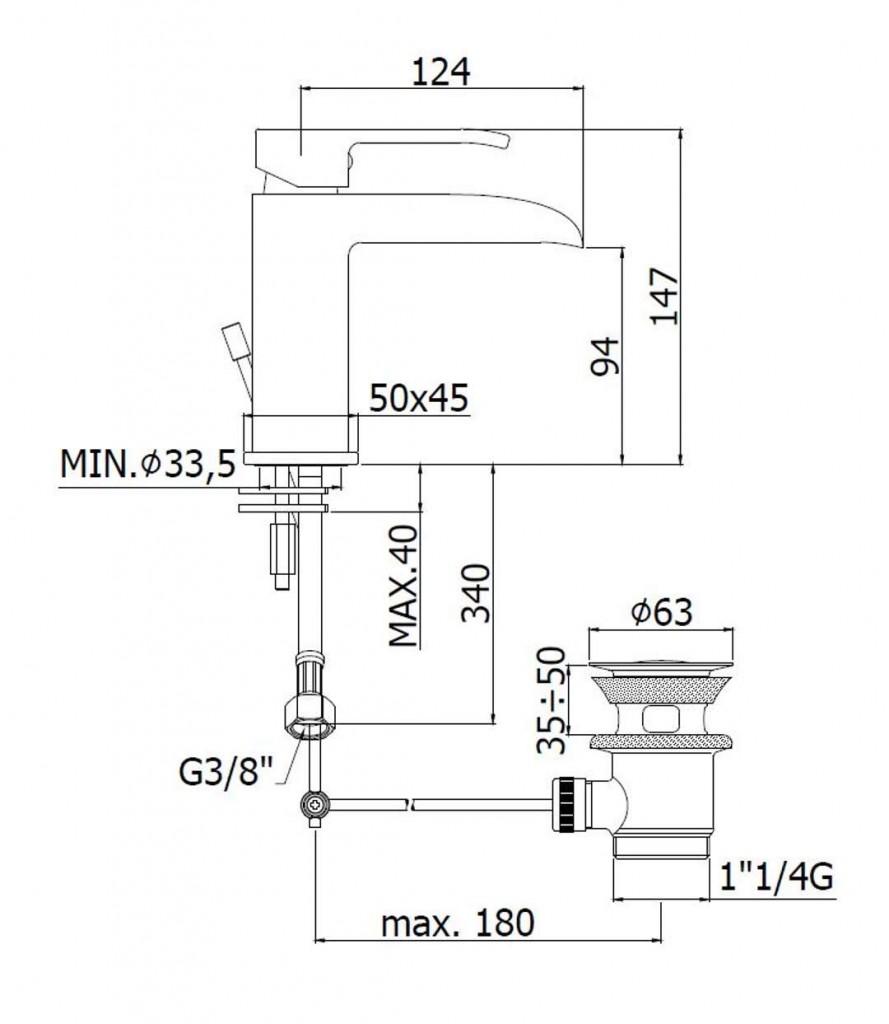 Umyvadlová stojánková baterie s otevřeným výtokem s výpustí