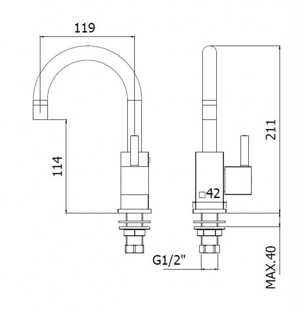 Umyvadlový ventil s otočným výtokem, na studenou vodu