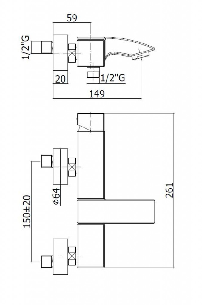 Nástěnná vanová/sprchová baterie bez příslušenství