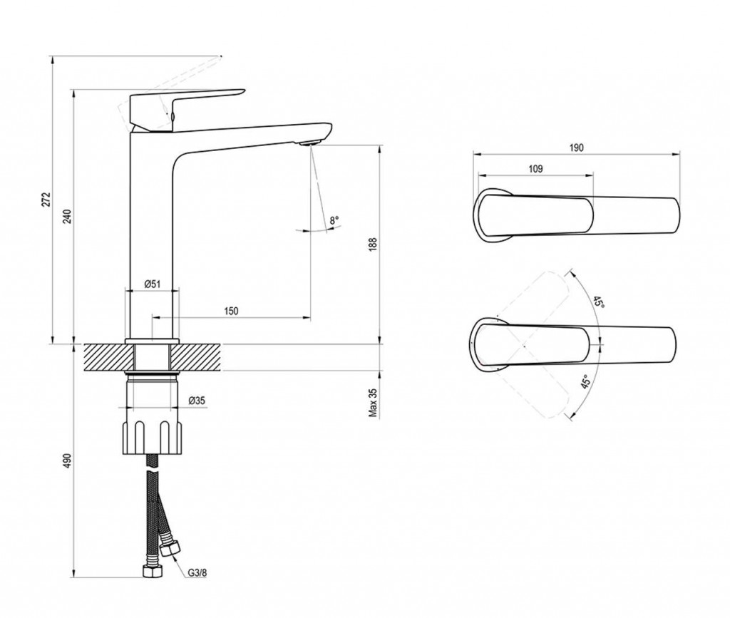 Umyvadlová baterie LF 014.20BL, bez výpusti