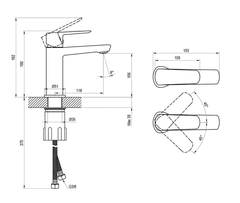 Umyvadlová baterie LF 012.00CR, bez výpusti