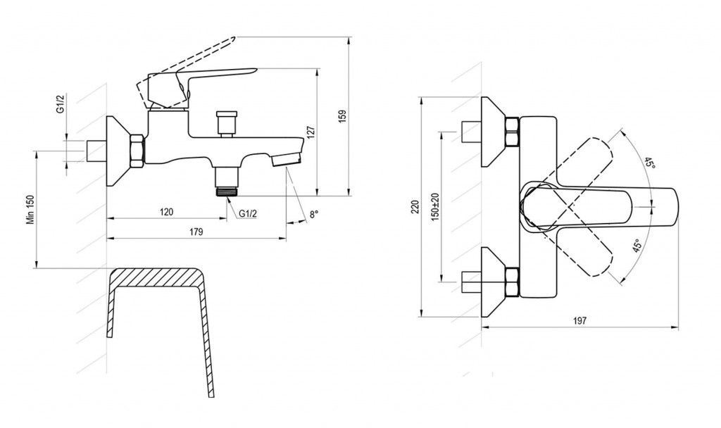 - rozteč 150 mm
