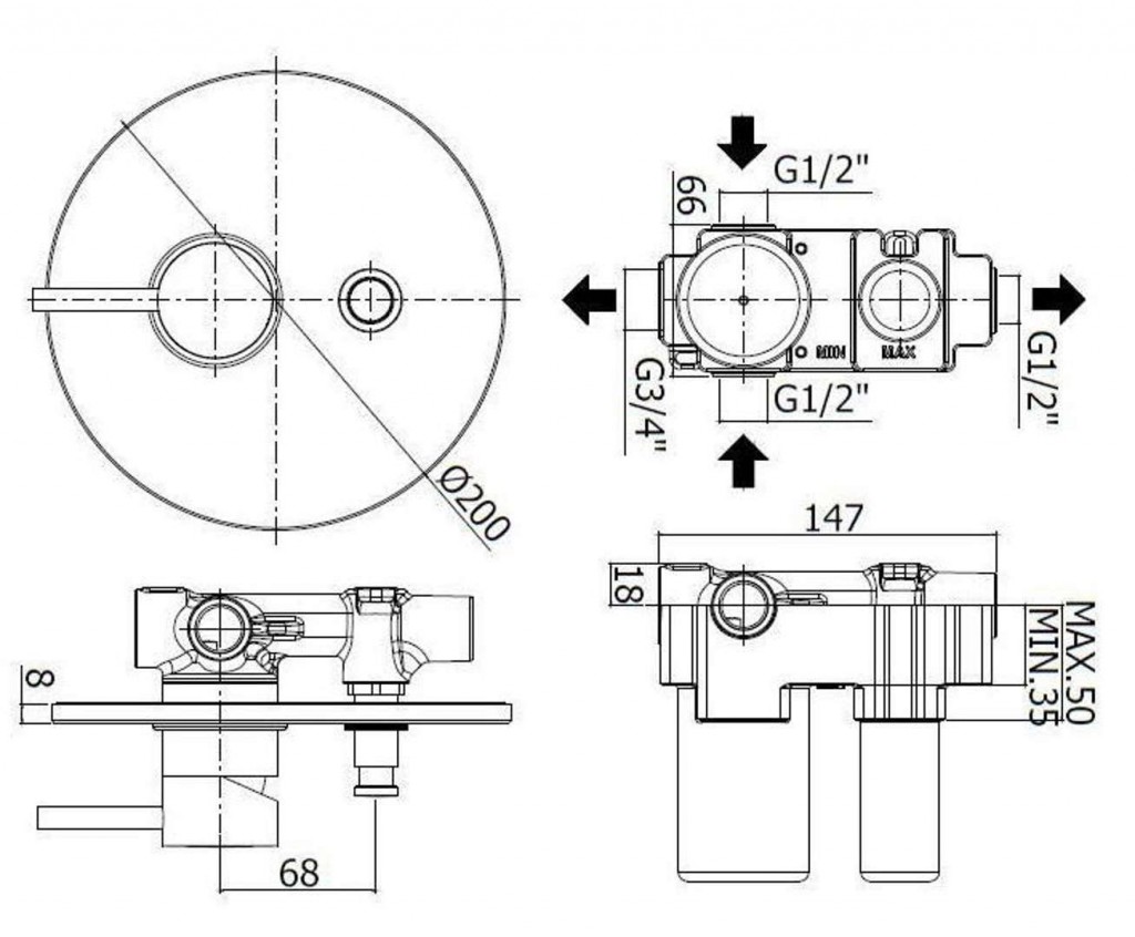 - spodní připojení 3/4"G