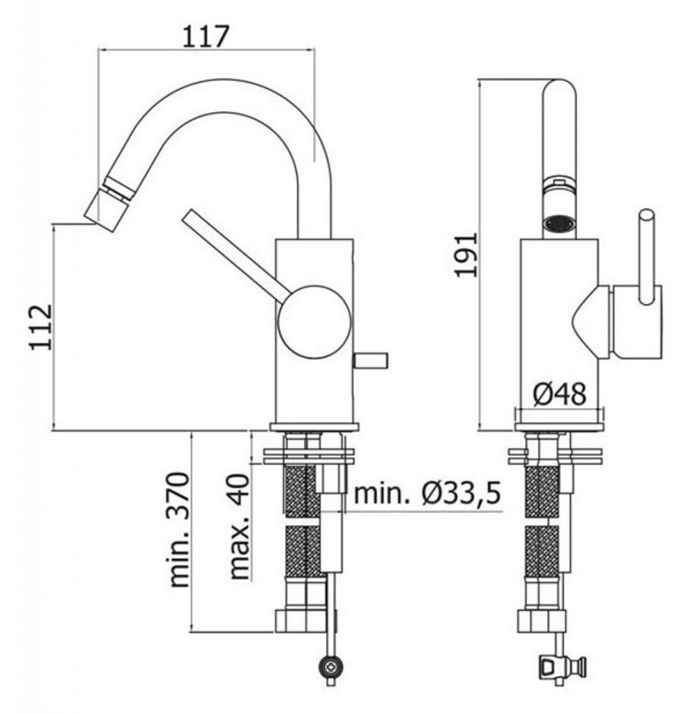 Bidetová stojánková baterie bez výpusti