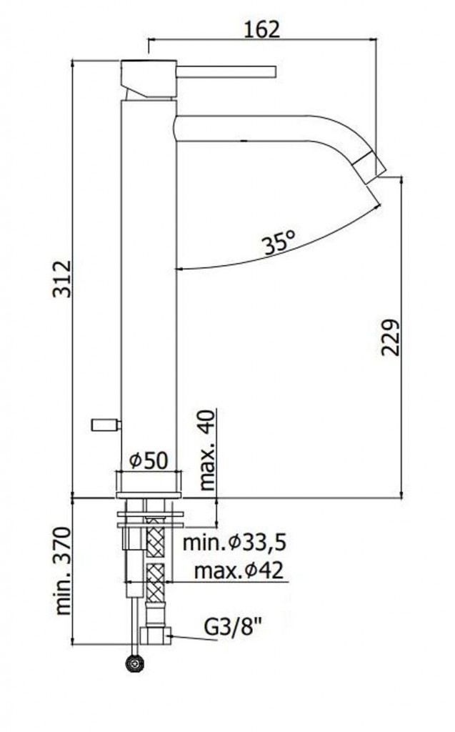Umyvadlová stojánková baterie vysoká, bez výpusti