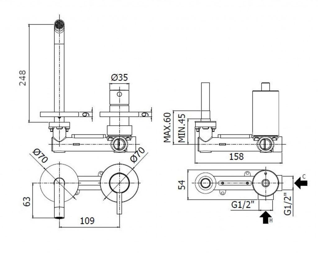 - délka výtoku 248 mm