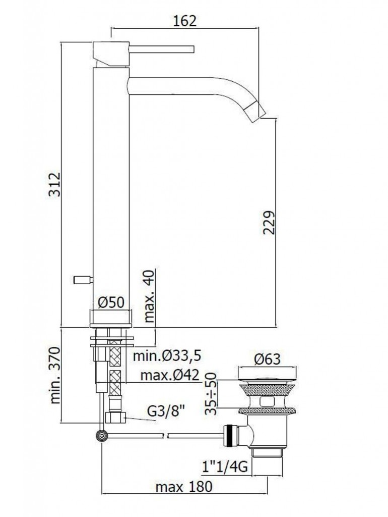 Umyvadlová stojánková baterie s výpustí, vysoká