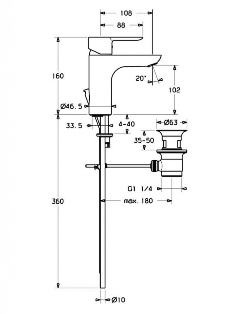 vyložení: 108 mm