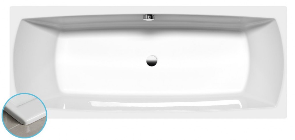 - Vana s pohodlně tvarovanými stěnami pro opření zad na obou stranách a odtokem umístěným uprostřed.