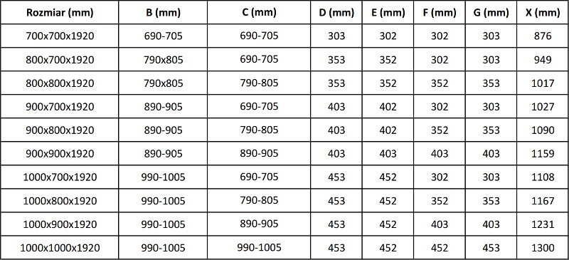 | Šířka otvoru | 949 |