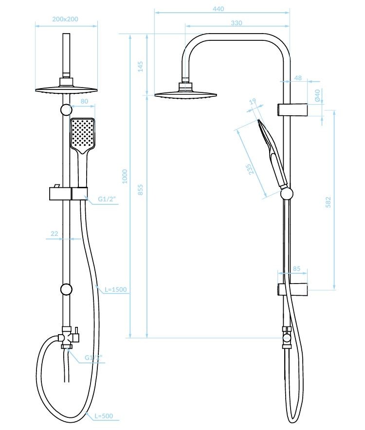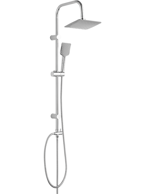 Součástí sloupu je dešťová sprchová hlavice a ruční sprcha, které nabízejí komfortní proud vody připomínající jemný déšť. Obě jsou vybaveny systémem proti usazování vodního kamene – silikonové trysky stačí jednoduše promnout prsty, a vodní kámen se snadno odstraní.