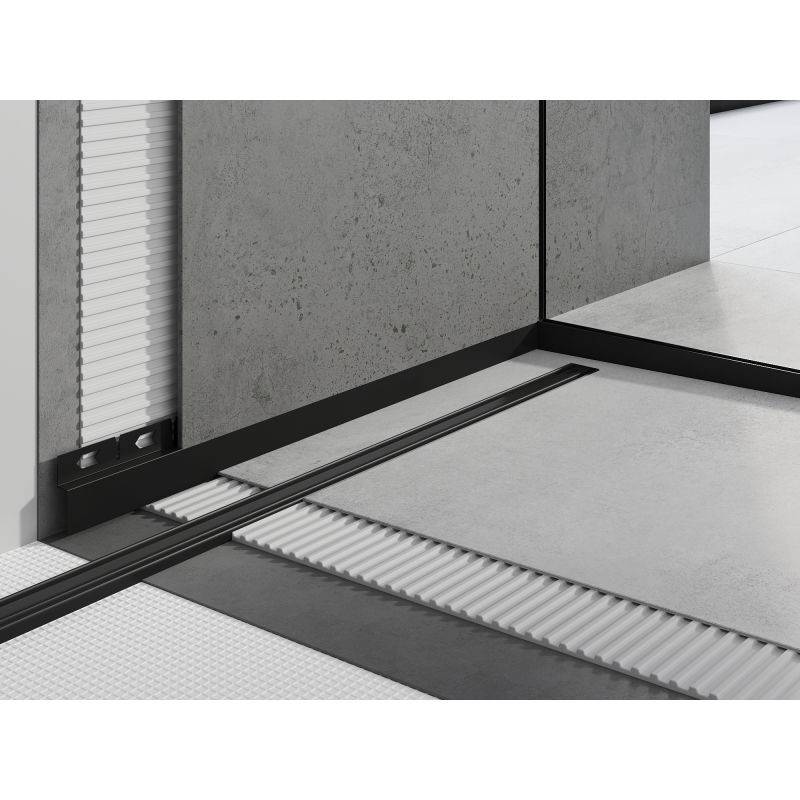 Přední lišta doplňuje použití šikmých lišt a vytváří tak ucelený celek ve sprchovém prostoru.
