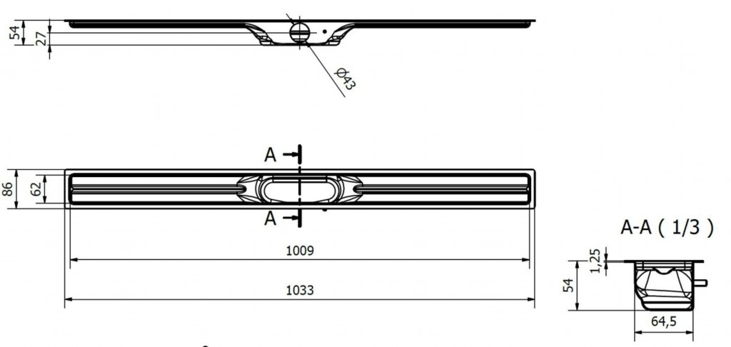 Stavební výška žlabu Linear 54 je vhodná pro renovační řešení i pro nové budovy. Sprchový rošt může být napojen pomocí přímého nebo 90° připojovacího dílu.
