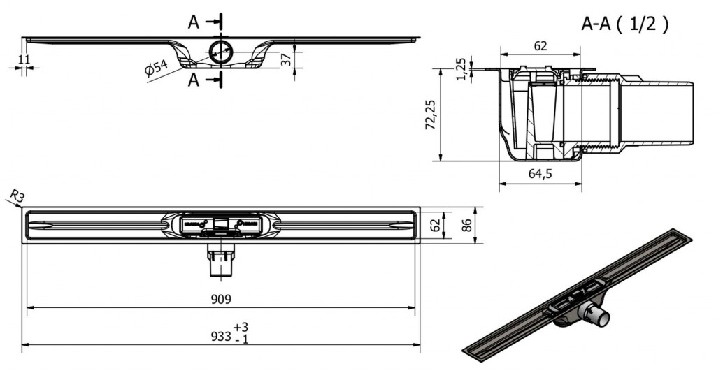 Sprchový žlab je vyroben z jednoho kusu nerezové oceli bez svarů, neobsahuje žádné spoje a lze tak velmi jednoduše čistit. Elegantně si poradí s vodou i ve Vašem bezbariérovém sprchovém koutu bez nutnosti montáže sprchové vaničky nebo hydroizolačního nátěru pod dlažbou.